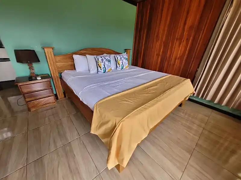 Comfortable cabin with direct view to Arenal Volcano just 2 miles away from downtown La Fortuna just a bit away from the busy town but far enough to rest and enjoy the countryside close to town. Safe parking in an gated property, king size bed, fully equipped kitchen, private bathroom with hot water, A/C unit, WIFI (10 megabytes), Cable TV, safety deposit box and a great balcony with volcano view. The property is close to all main attractions in the area, just 10 to 35 minutes drive ratio.