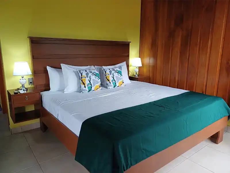 Comfortable cabin with direct view to Arenal Volcano just 2 miles away from downtown La Fortuna just a bit away from the busy town but far enough to rest and enjoy the countryside close to town. Safe parking in an gated property, king size bed, fully equipped kitchen, private bathroom with hot water, A/C unit, WIFI (10 megabytes), Cable TV, safety deposit box and a great balcony with volcano view. The property is close to all main attractions in the area, just 10 to 35 minutes drive ratio.